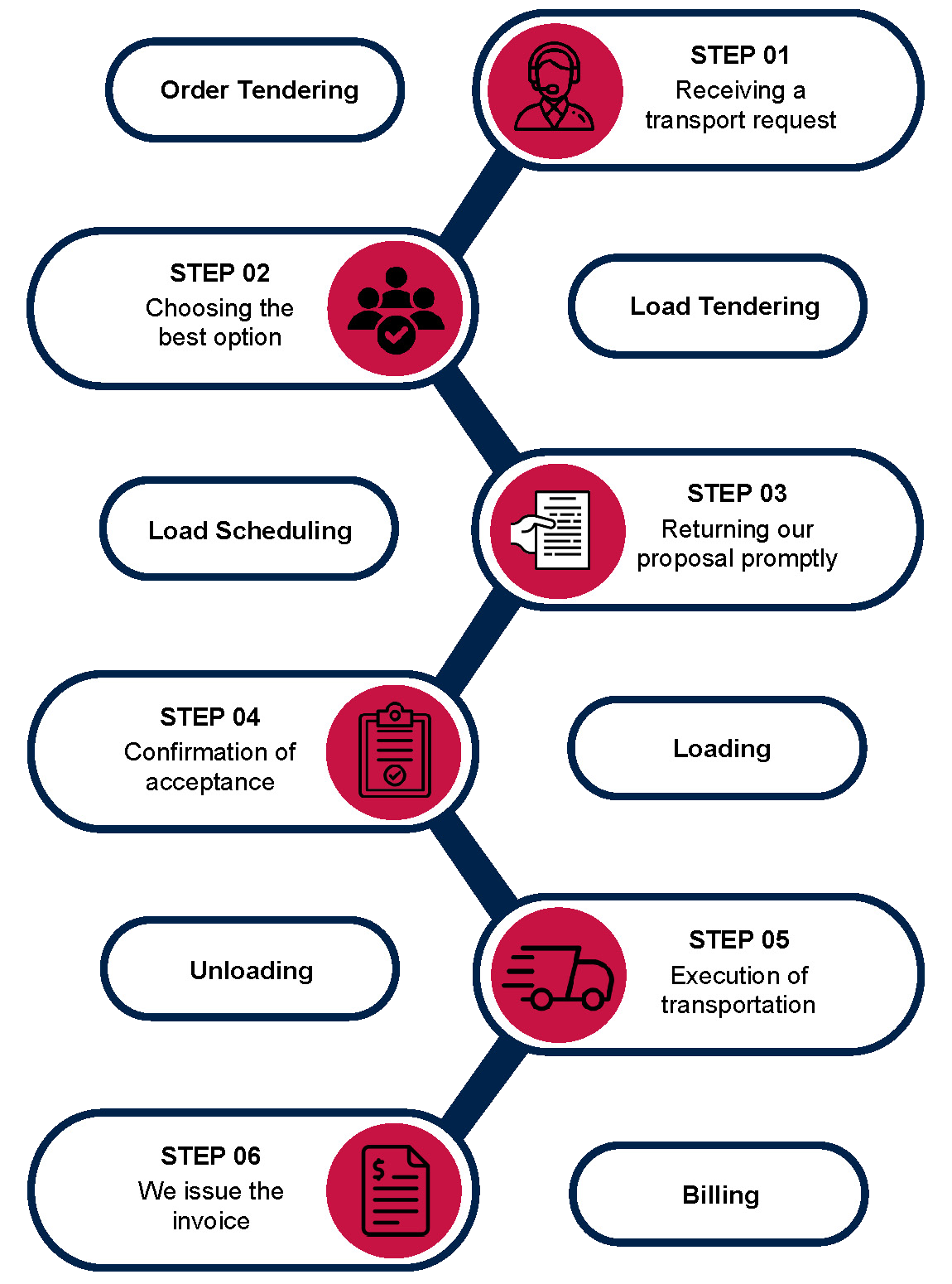- Order Tendering: We start by receiving shipment details and requirements from our clients, laying the groundwork for the entire process.